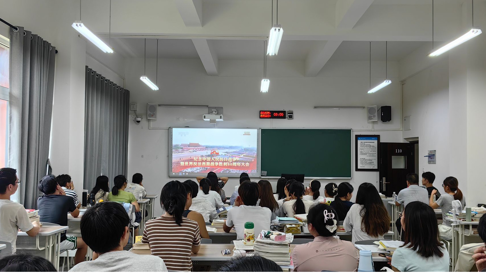 9月3日上午,学工部党支部组织暑期留校学生在博学楼集中收看纪念中国人民抗日战争暨世界反法西斯战争胜利80周年大会及阅兵仪式直播。学校党委委员、学工部部长任江林参加集中收看。