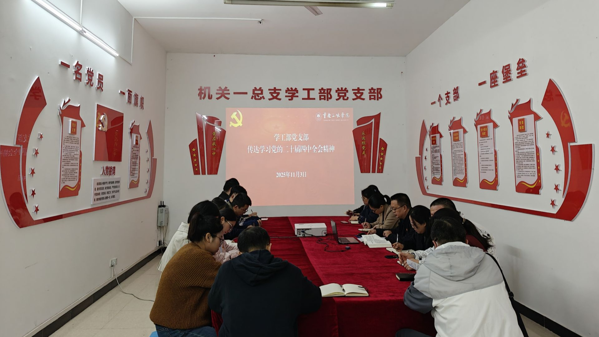 11月3日,学工部党支部召开党员大会,传达学习党的二十届四中全会精神,研究部署贯彻落实工作。党支部书记任江林主持会议,全体党员同志参加。