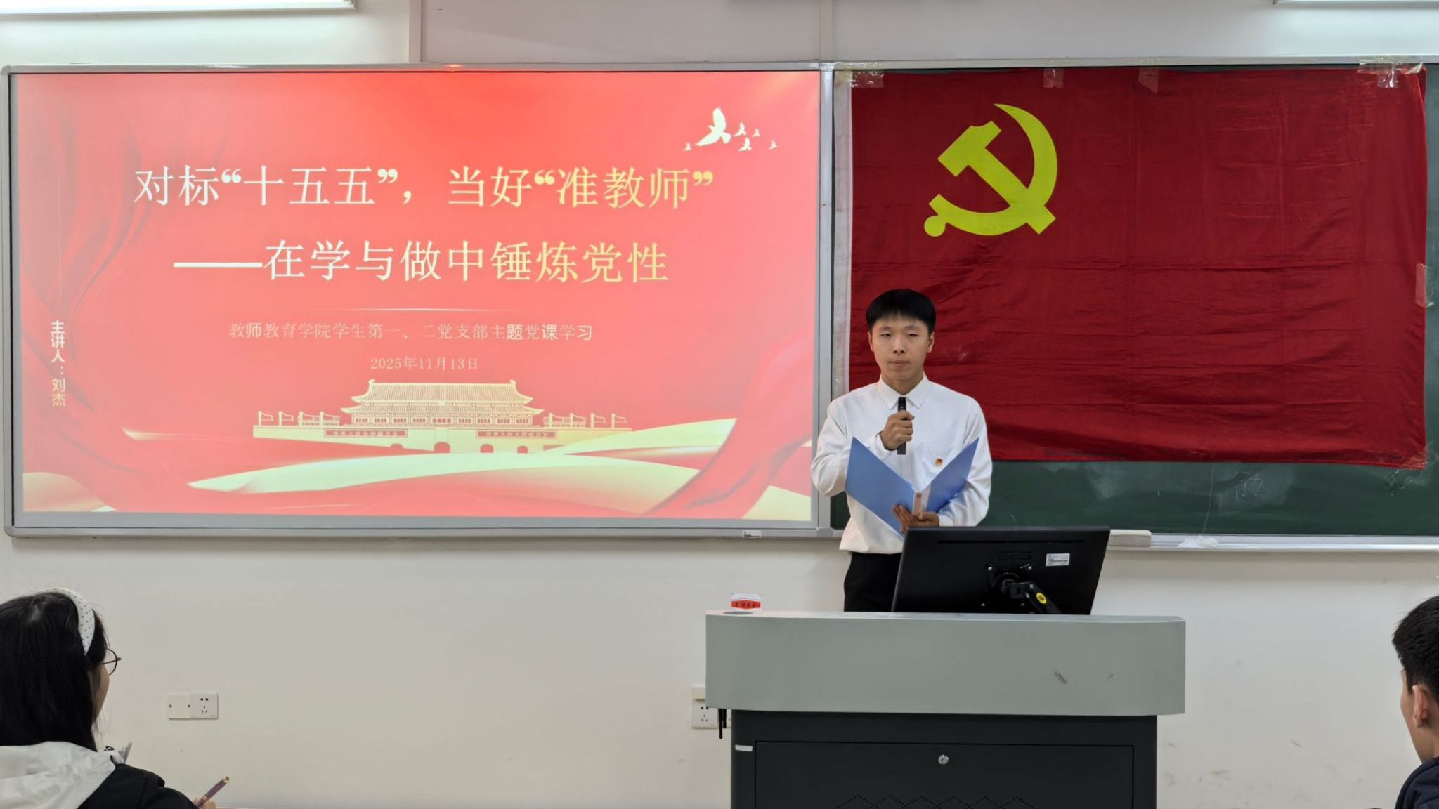 参会党员踊跃发言,结合自身学习、实践与未来职业规划,分享对全会精神的理解与践行思路。学生党员肖虹宇谈到:“全会强调‘坚持教育优先发展,加快建设教育强国’,作为教师教育专业的党员,我们肩负着培养未来教师的重要使命。今后,我将在专业学习中深耕细作,努力提升教学技能,争取成为一名有理想、有本领、有担当的优秀教育工作者。”