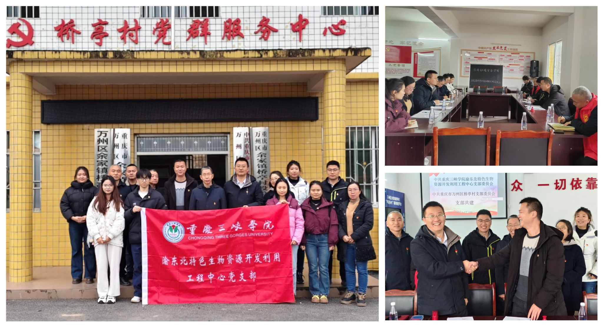 为深入学习贯彻党的二十大和二十届历次全会精神,全面落实新时代党的建设总要求,推动基层党组织资源共享、优势互补、共同发展,12月9日,生物与食品工程学院渝东北特色生物资源开发利用工程中心党支部与万州区余家镇桥亭村党支部正式签署结对共建协议,并组织开展首次共建活动。学院党总支书记肖国生、党总支副书记黎涵、副院长兼“工程中心”党支部书记赵峰及党支部党员代表20余人参与活动。