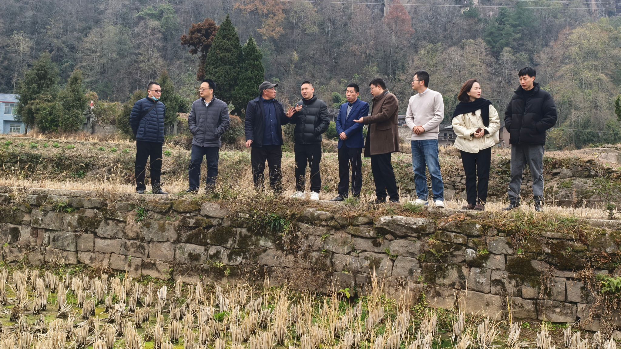 最后,学校党委常委、副校长尹立孟一行深入恒心村一组梯田开展调研,实地察看农业生产条件,与基层干部和群众面对面交流,重点了解当地农业产业发展需求和机械化、智能化发展方向,为后续校地合作和科技帮扶指明了方向。