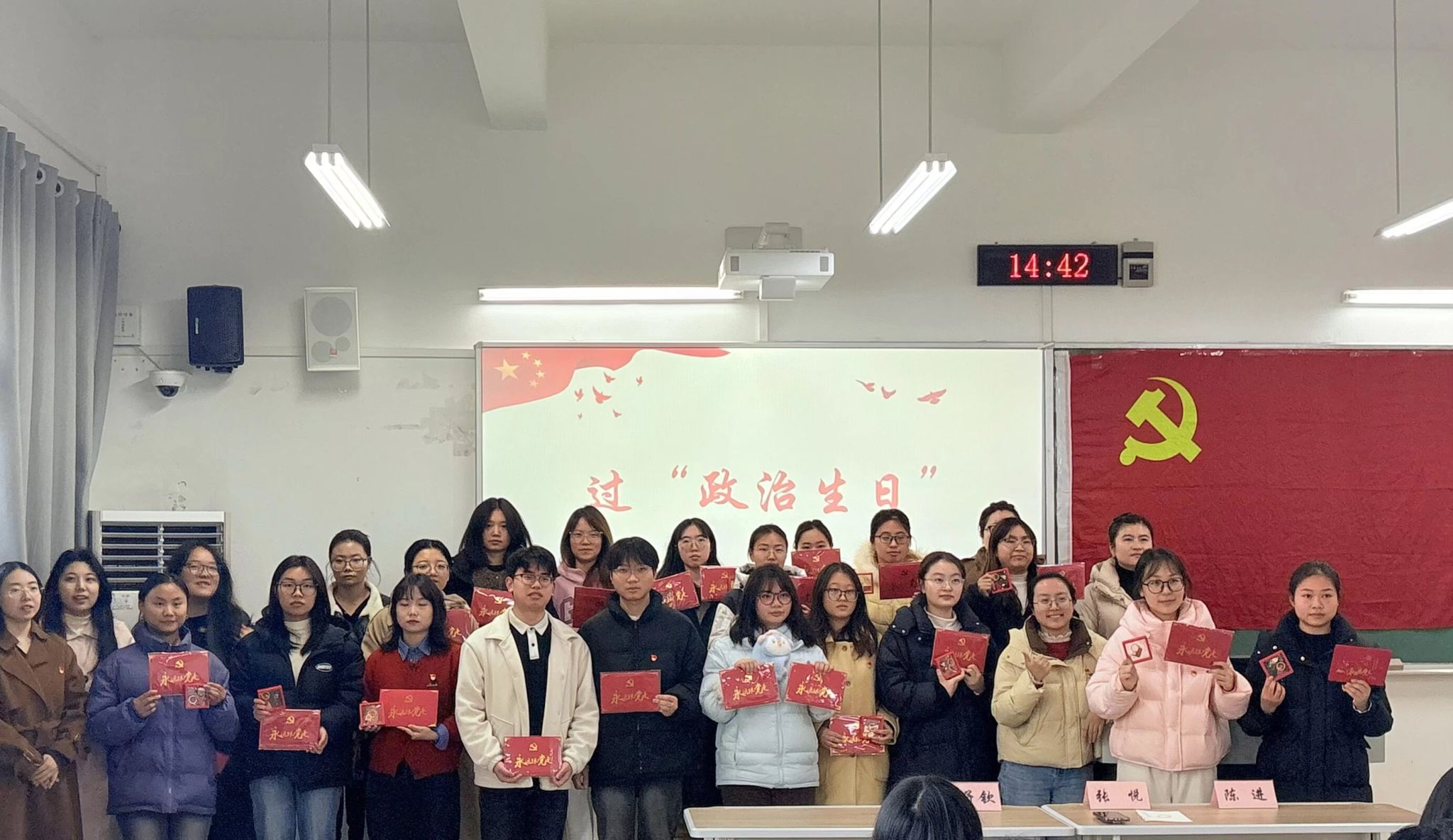 党支部书记向党员们赠送了精心准备的政治生日礼物。与会党员结合近期思想动态与学习生活实际,分享成长体会,畅谈使命担当,并对党组织的培养表达衷心感谢。周子钦强调,全体党员要始终不忘初心、牢记使命,不断强化身份意识、宗旨意识和责任意识,在学习与生活中切实发挥先锋模范作用。
