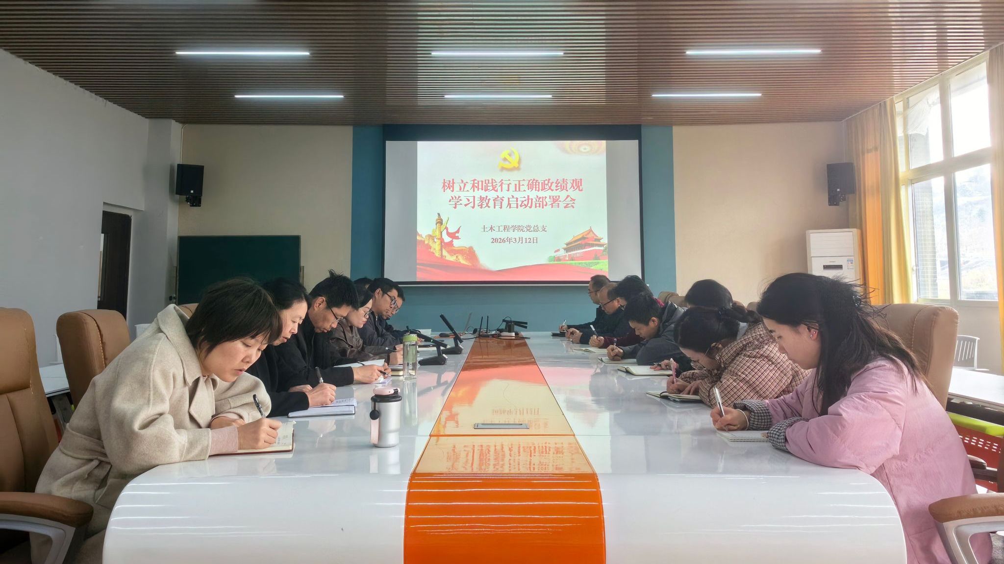 3月12日上午,土木工程学院党总支召开专题会议,正式启动并部署树立和践行正确政绩观学习教育工作。学院领导班子成员、专职组织员、党总支委员、各党支部书记、各党支部委员及师生党员代表参加会议。