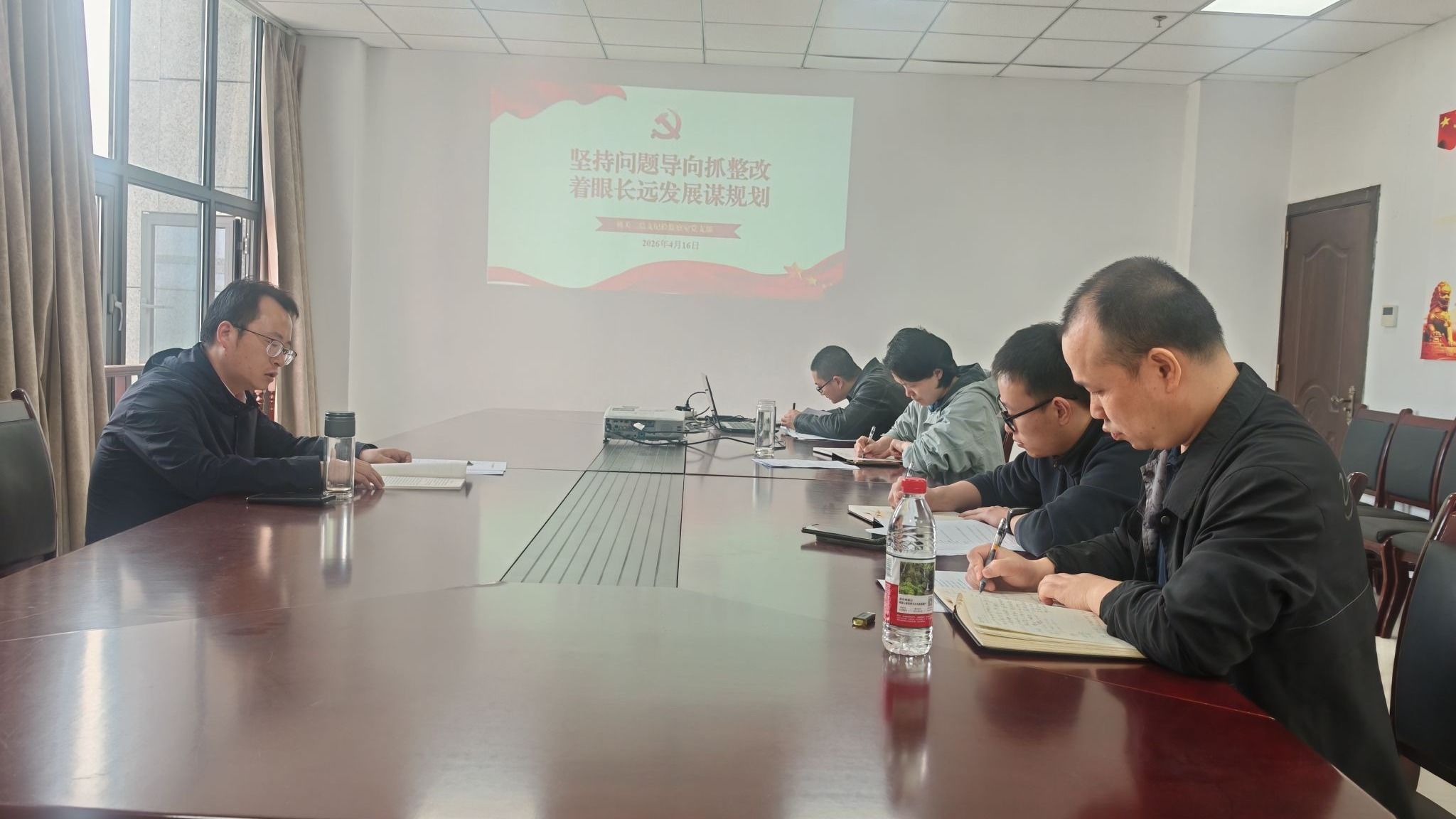 4月16日,纪检监察室党支部开展“坚持问题导向抓整改 着眼长远发展谋规划”主题党日活动,全体党员参会。党支部书记张祥友主持。