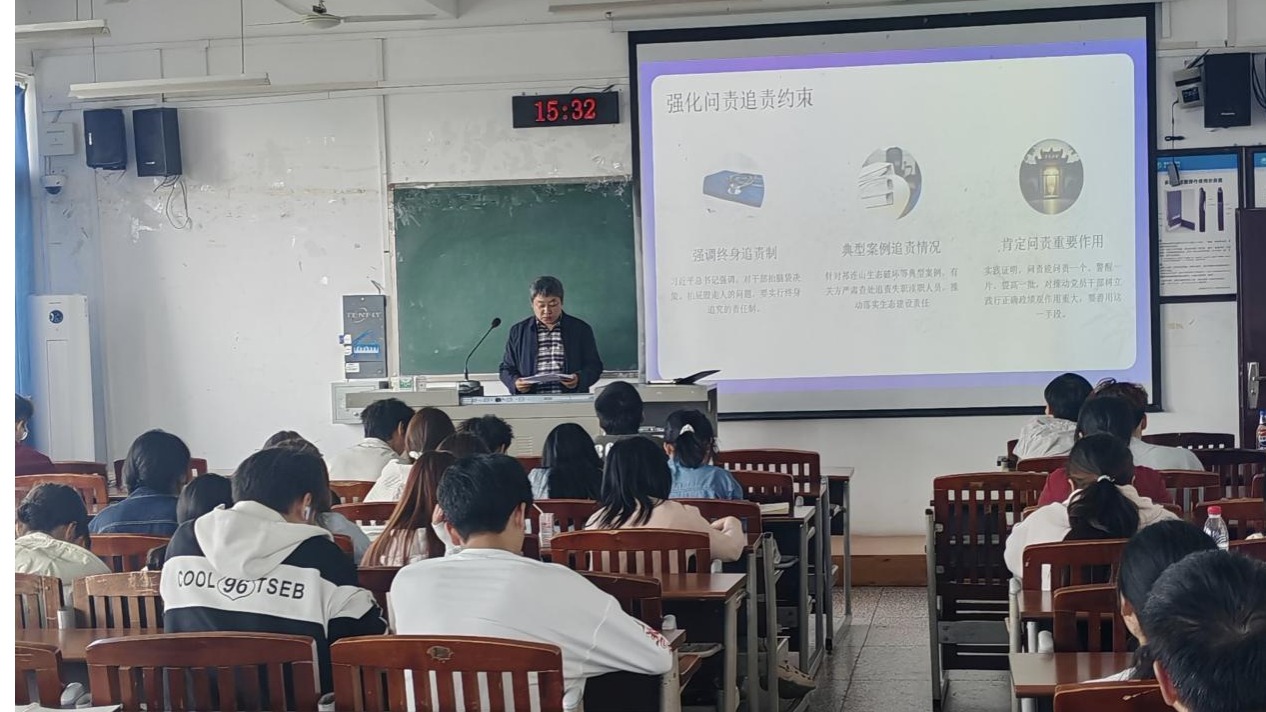 党总支副书记廖红富以“树立和践行正确政绩观”为题授课,主要围绕“政绩为谁而树、树什么样的政绩、靠什么树政绩”等根本问题,系统阐释了正确政绩观的核心内涵与实践要求。他强调,为民造福是最大政绩,必须坚持以师生为中心,把心思和精力用在打基础、利长远、出实招、求实效的事情上,力戒形式主义,不搞急功近利。他要求全体学员将正确政绩观内化于心、外化于行,在专业学习、科技竞赛、服务师生中担当实干,以实际行动争取早日成为一名合格的共产党员。