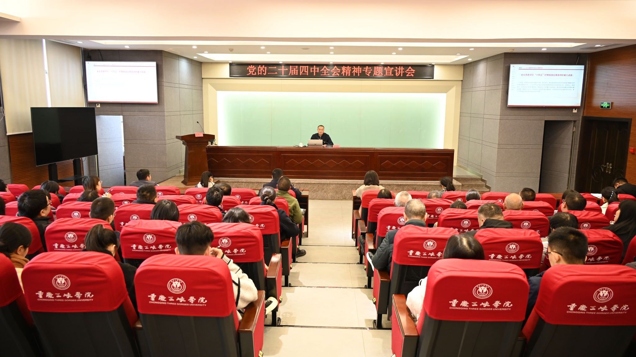 许光洪从党的二十届四中全会的重要意义、“十五五”时期的定位与发展方向、战略任务与落实路径、党的全面领导的核心作用,以及推动全会精神在学校落地见效等维度,进行系统阐释与深入解读,既有理论高度,也贴合高校发展实际。